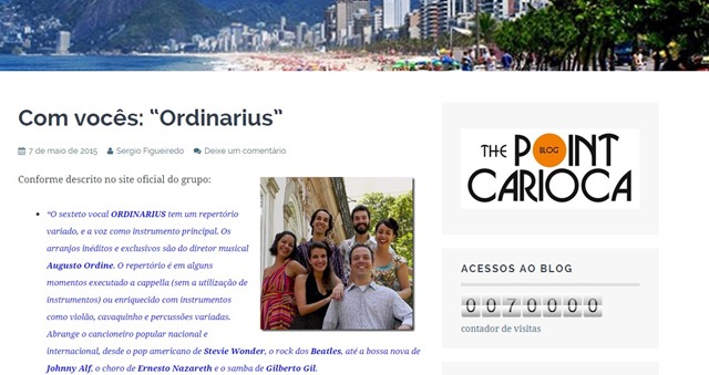 “O sexteto vocal ORDINARIUS tem um repertório variado, e a voz como instrumento principal. Os arranjos inéditos e exclusivos são do diretor musical Augusto Ordine. O repertório é em alguns momentos executado a cappella (sem a utilização de instrumentos) ou enriquecido com instrumentos como violão, cavaquinho e percussões variadas. Abrange o cancioneiro popular nacional e internacional, desde o pop americano de Stevie Wonder, o rock dos Beatles, até a bossa nova de Johnny Alf, o choro de Ernesto Nazareth e o samba de Gilberto Gil.